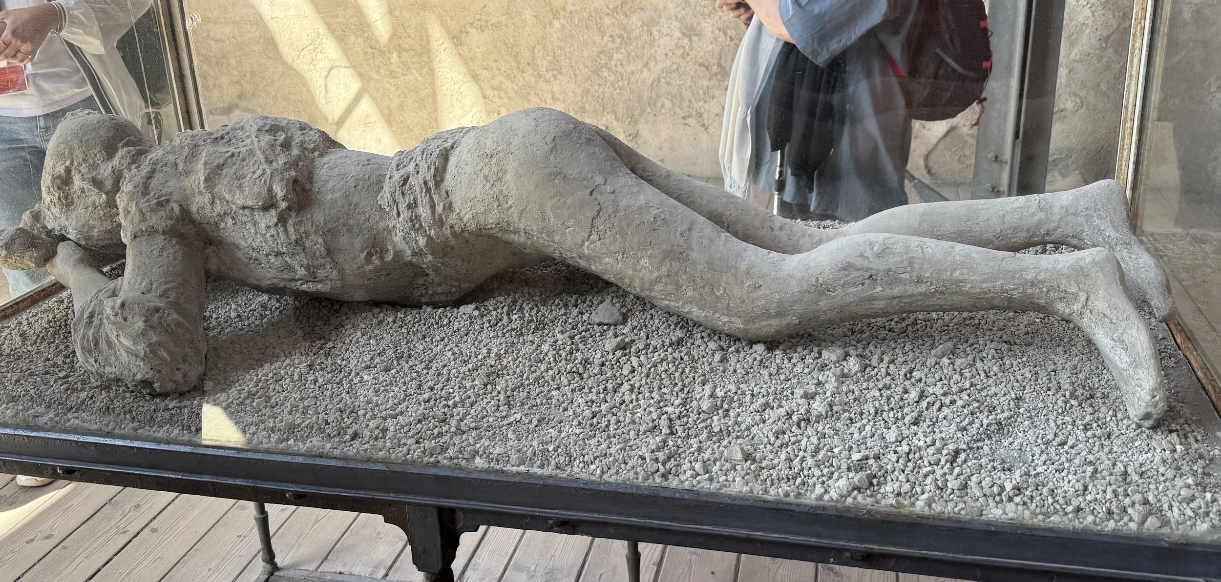 Plaster casts of victims made by pouring plaster into the hollow space under the ash